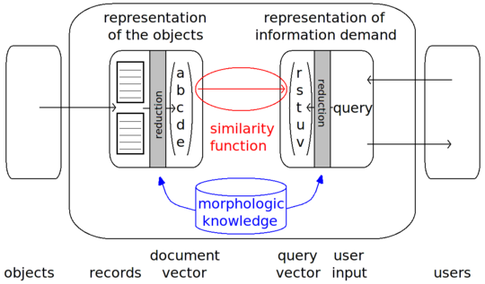 - When a user inputs a query, a similarity function calculates a similarity or ranking value for each document (vector) related to the query (vector). The documents are retrieved in the order of their ranking value.
