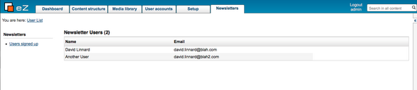 For our module this is an issue as Editor’s only have access to the Content and Media tabs (as they should). However, we need to make sure that when the User List is displayed, the editors also have permission to see the users in the mailing list (currently they will be shown an empty list).